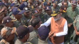 जवानों से विदाई लेते प्रधानमंत्री नरेंद्र मोदी
